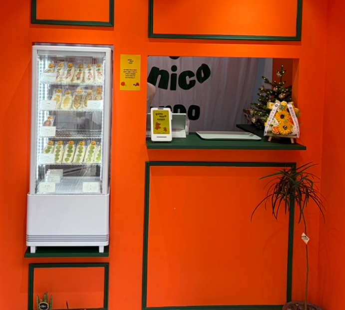 안으로 들어가면 복잡하지 않은 구조가 눈에 띕니다. 테이크아웃을 중심으로 한 구성이라 오래 머무는 카페라기보다는 디저트를 고르고 나오는 흐름에 가깝습니다. 진열대에 놓인 산도들이 한눈에 들어오며 선택을 고민하게 만듭니다.