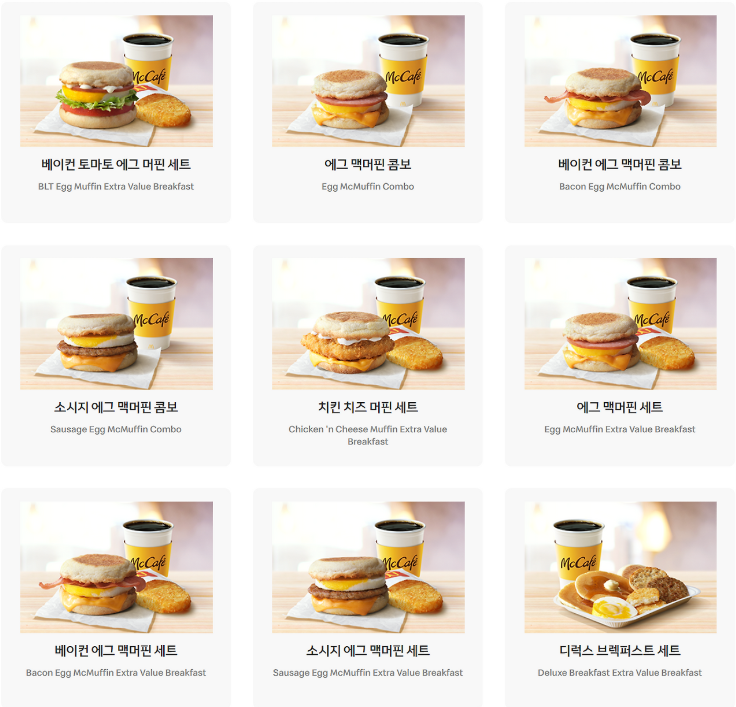맥모닝 메뉴는 비교적 단순한 편입니다. 잉글리시 머핀을 기반으로 한 버거류와 사이드, 음료로 구성되어 있어 아침에 부담 없이 먹기 좋습니다. 햄버거보다 가볍게 느껴지는 구성이 특징입니다.