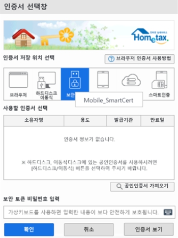 - 인증서 저장 방식 선택: 인증서를 PC에 저장할지 모바일에 저장할지를 선택합니다.